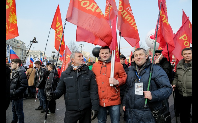 Колонну партии "РОДИНА" возглавил её председатель, депутат Госдумы Алексей Журавлёв. Вместе с ним выразили свой протест против "цветных" революций секретарь Политсовета, лидер столичный социал-патриотов Михаил Колчев, член Бюро, сопредседатель социально-патриотического клуба "СТАЛИНГРАД" Алексей Рылеев, идеолог партии, сопредседатель социально-патриотического клуба "СТАЛИНГРАД" Фёдор Бирюков, председатель Центральной контрольно-ревизионной комиссии Роман Лобзин, руководитель фракции "РОДИНА" в Мосгордуме Андрей Шибаев, председатель регионального отделения в Московской области Алексей Звягин, председатель регионального отделения в Крыму Антон Тицкий, председатель отделения в Севастополе Сергей Смольянинов, председатель регионального отделения в Республике Татарстан Айрат Ханипов, председатель Совета партии "РОДИНА" по вопросам разработки и совершенствования законодательства РФ, адвокат Янис Юкша