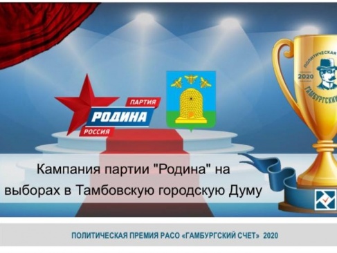 В рамках форума состоялось подведение итогов и определение победителей политической премии РАСО "Гамбургский счет" за 2020 год. В номинации "Лучшая муниципальная кампания непарламентской оппозиционной партии" победила кампания партии "РОДИНА" на выборах в Тамбовскую городскую Думу.