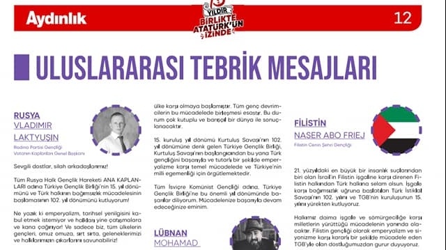 Миллионным тиражом вышла популярная в Турции Aydinlik, посвященная 15-летнему юбилею организации TGB (Турецкая молодежная ассоциация). Юбиляров поздравили многие лидеры молодежных объединений из разных стран мира.