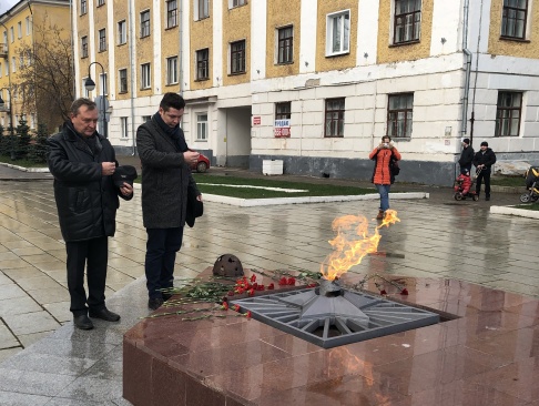 7 ноября в Кирове на берегу Вятки у Вечного Огня председатель Совета Кировского регионального отделения партии "РОДИНА" Федор Лугинин и атаман Вятской Региональной казачьей общественной организации "Союз казаков-воинов России и Зарубежья", войсковой старшина Юрий Басманов почтили память погибших земляков, бойцов 355 стрелковой дивизии.