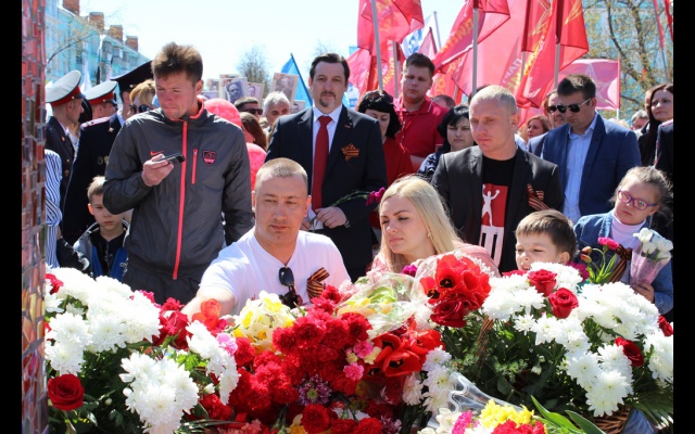 С главной площади поселка Олег Чесноков отправился в Дзержинск, где вместе с другими соратниками по партии принял участие в торжественном митинге, посвященном 70-летию Великой Победы.
