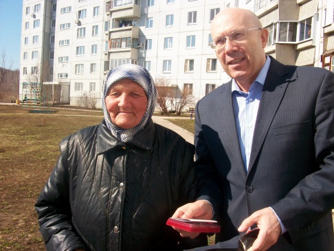 Председатель Совета Жигулевского городского отделения партии, председатель Жигулевской городской общественной организации "Жигулевское землячество" Александр Лубский лично посещает ветеранов и со словами благодарности торжественно вручает им памятные медали и подарочные наборы "РОДИНЫ".