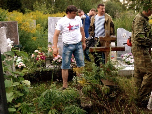 Председатель регионального отделения партии "РОДИНА" в Ярославской области Тарас Сидорин принял участие в обустройстве могил защитников Родины на Игнатовском кладбище.